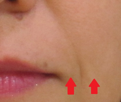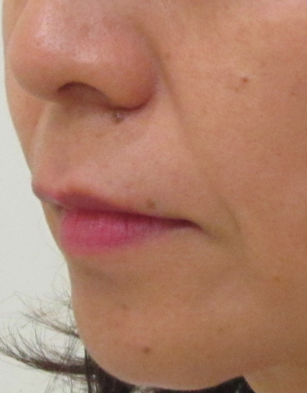 施術前・・・法令線が上から下まで比較的明瞭にあります。