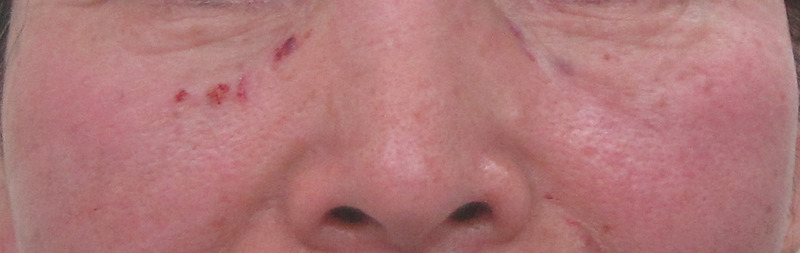 右頬(向かって左側)のイボも切除され、きれいになっています。