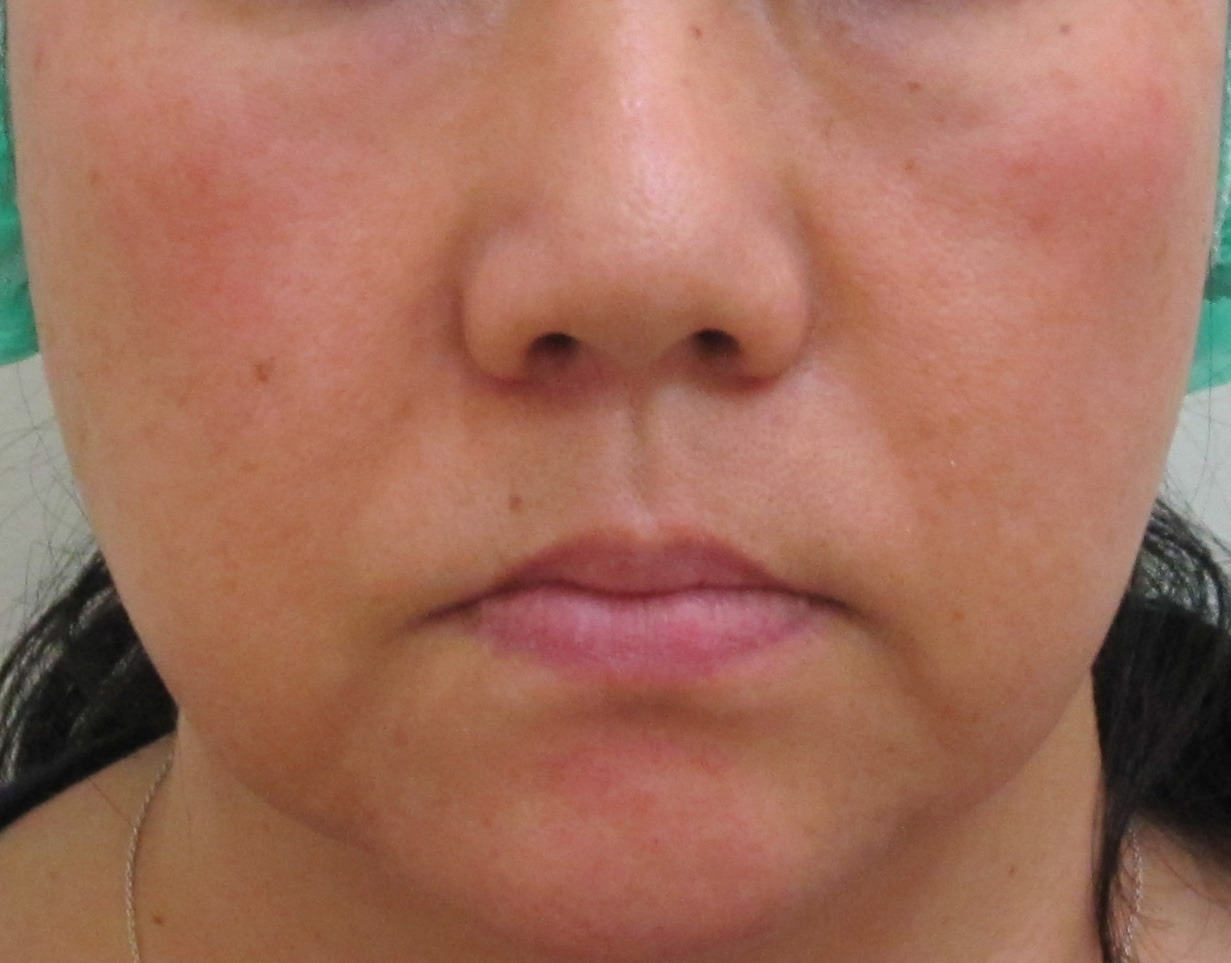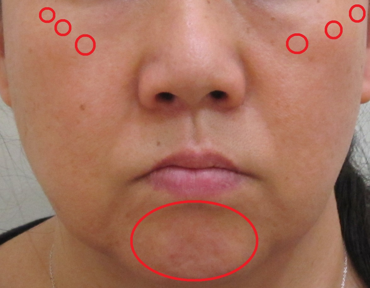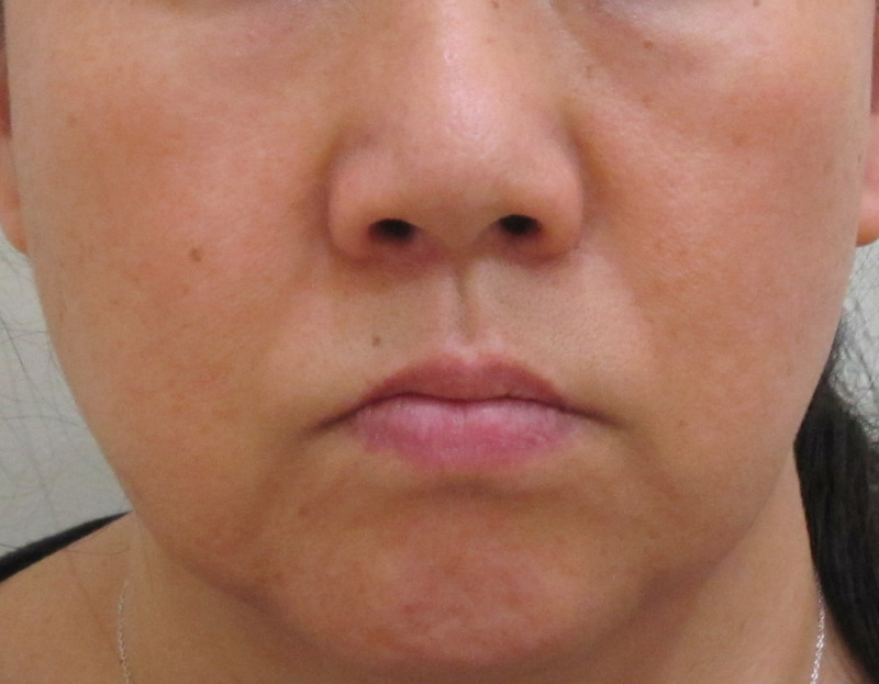 施術前・・・アゴが小さいため、アゴに梅干ジワができています。