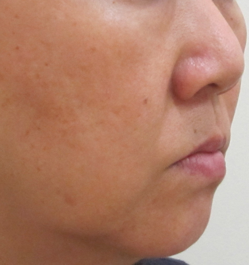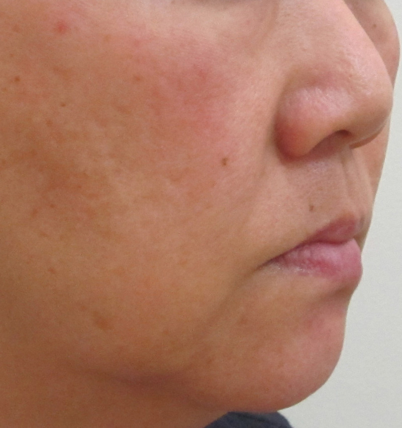 ほうれい線などのシワそのものには注射は行っていませんが、わずかながらほうれい線も浅くなっています。