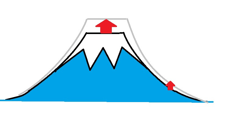 今回の頬へのヒアルロン酸注射の原理としては、山の頂上が高くなることで、裾野も持ち上がるというものです。