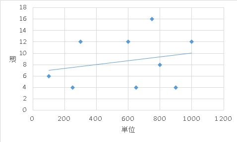 これらの9症例の投与量と回復までの期間をグラフにすると以下の通りです。