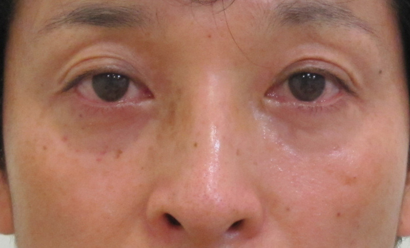 皮膚が薄いため、目の下がくぼんだ印象になっています。