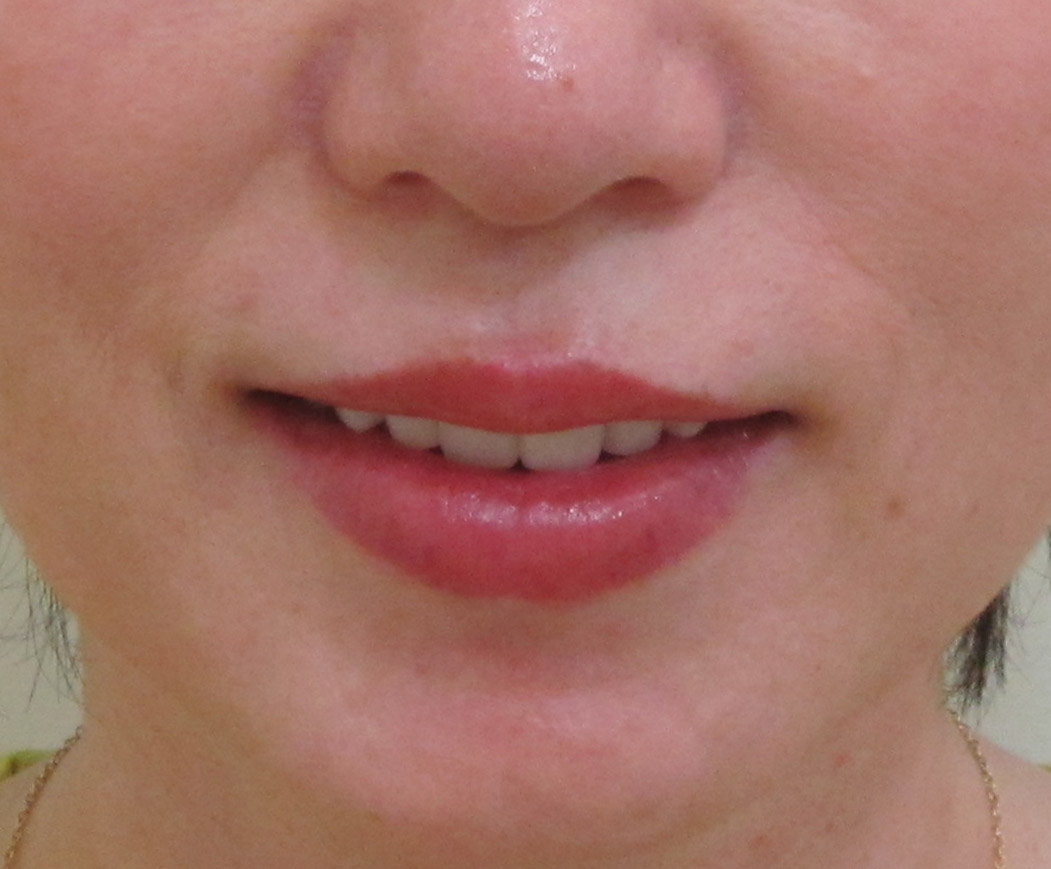なお、こちらの方は、治療前の法令線は比較的浅く、「シワ」というよりは、「鼻横のくぼみ」と言える状態でした。