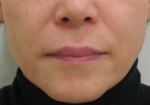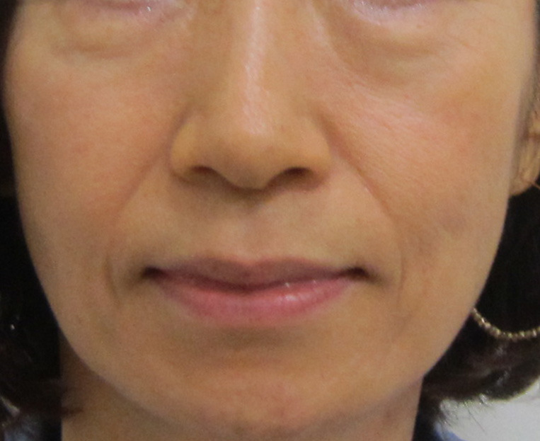 施術前・・・ほうれい線はありますが、口横のシワは笑っていない時にはありません。
