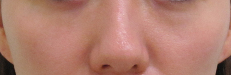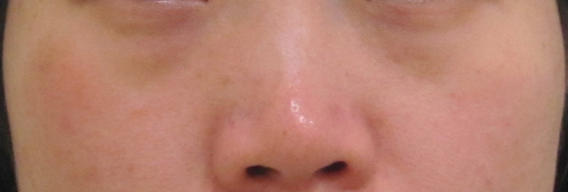 施術前(メイクなし)・・・目の下には赤クマが見られます。