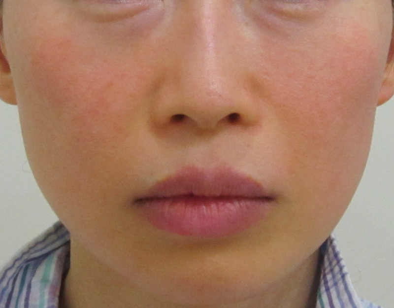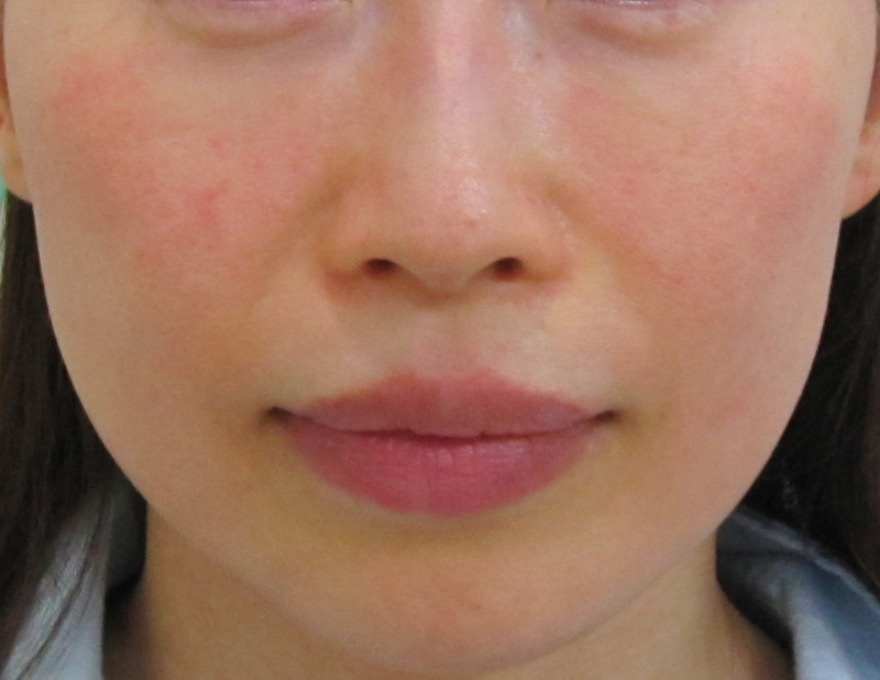 6ヵ月後・・・ある程度の改善は見られていますが、まだ赤みと脂肪の輪郭が隠しきれていません。