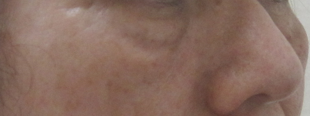 1年5ヶ月後・・・多少のたるみ感は残っていますが、凹凸とシミは改善しています。