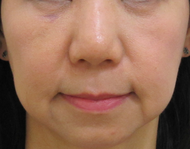 6ヵ月後・・・多少の小ジワが目の下に残っていますが、クマが解消され、頬もリフトアップした印象です。