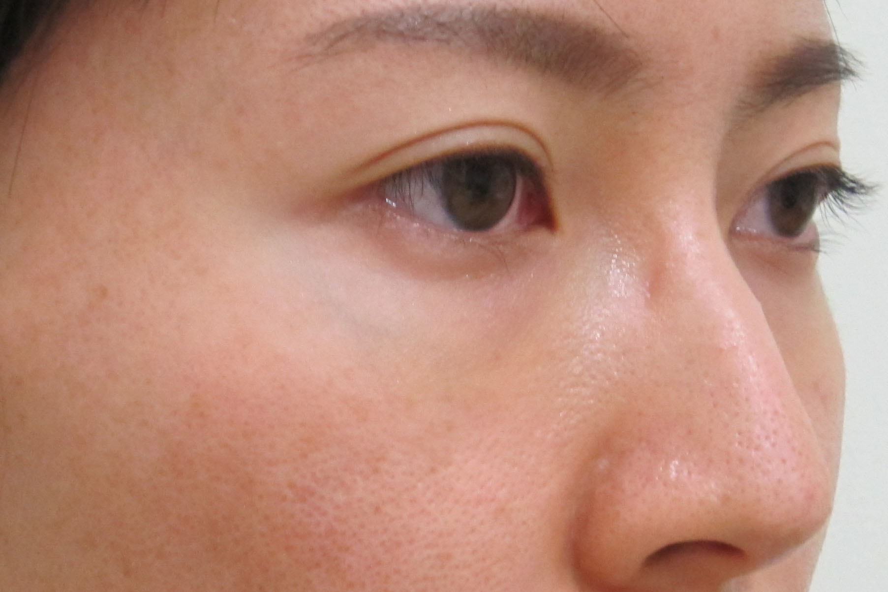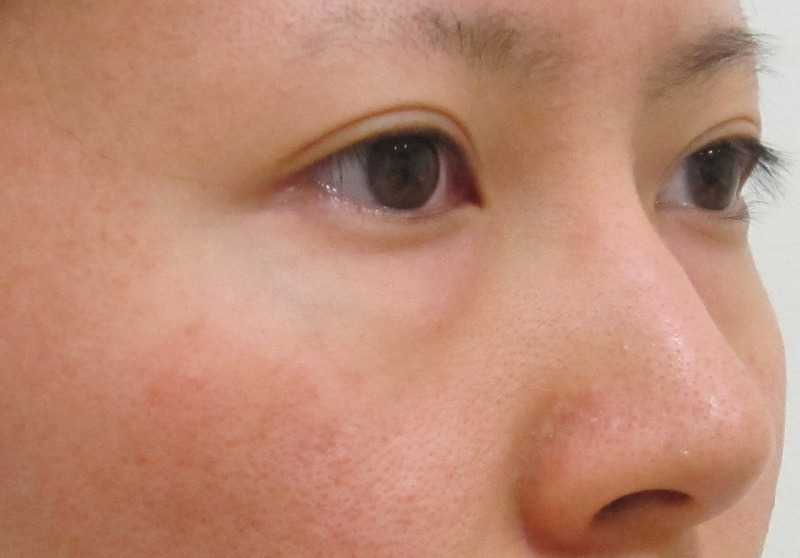 また、血管が透けて見えることでおこる紫クマもわずかに残っています。