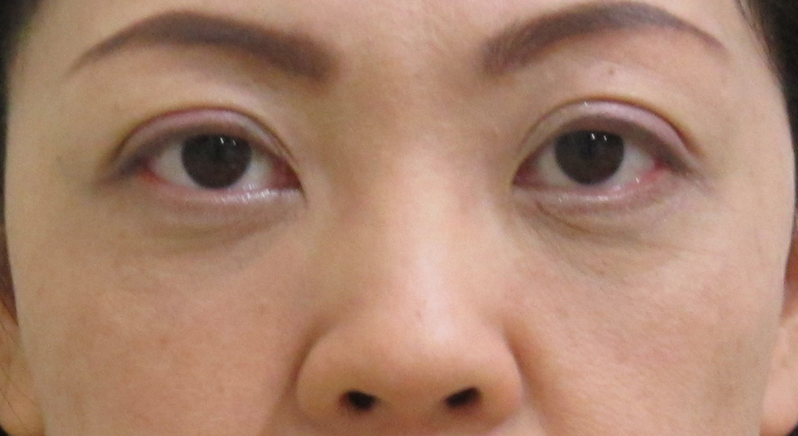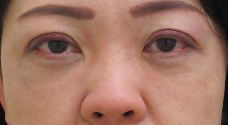 1.涙袋 は目の下の脂肪(眼窩脂肪)の突出により左右ともにほとんど不明瞭になっています。