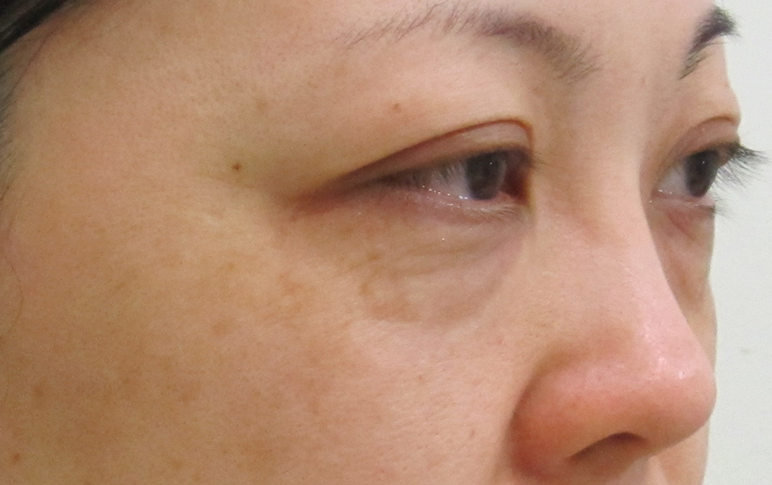 術前(メイクなし)・・・診察上の所見・色で分類したクマの種類としては、以下の通りです。