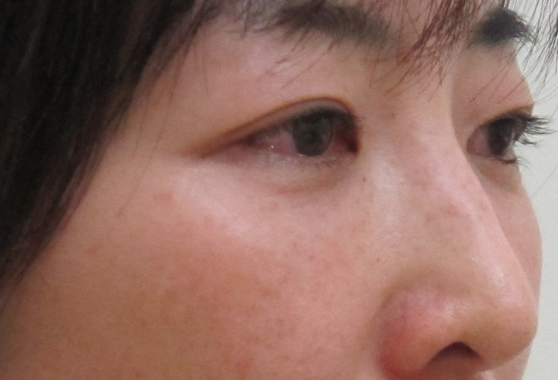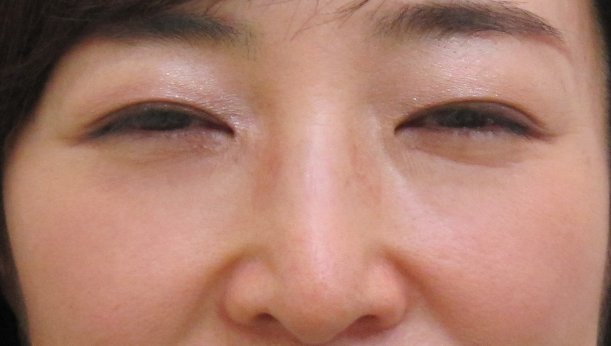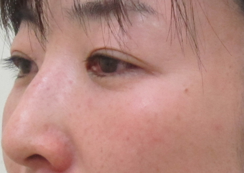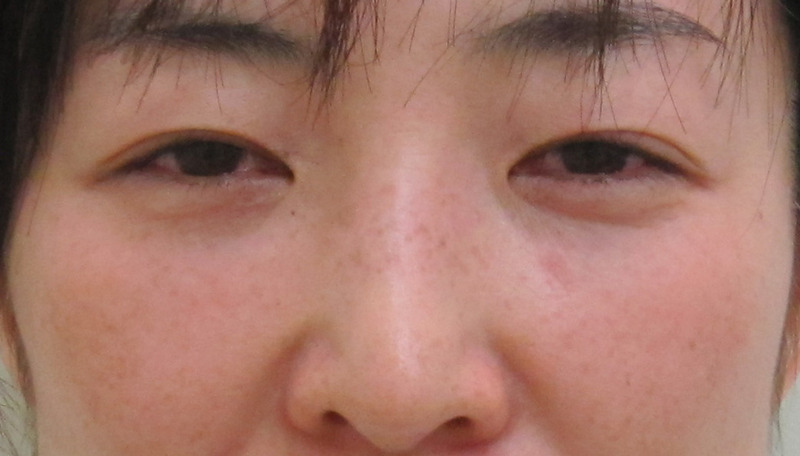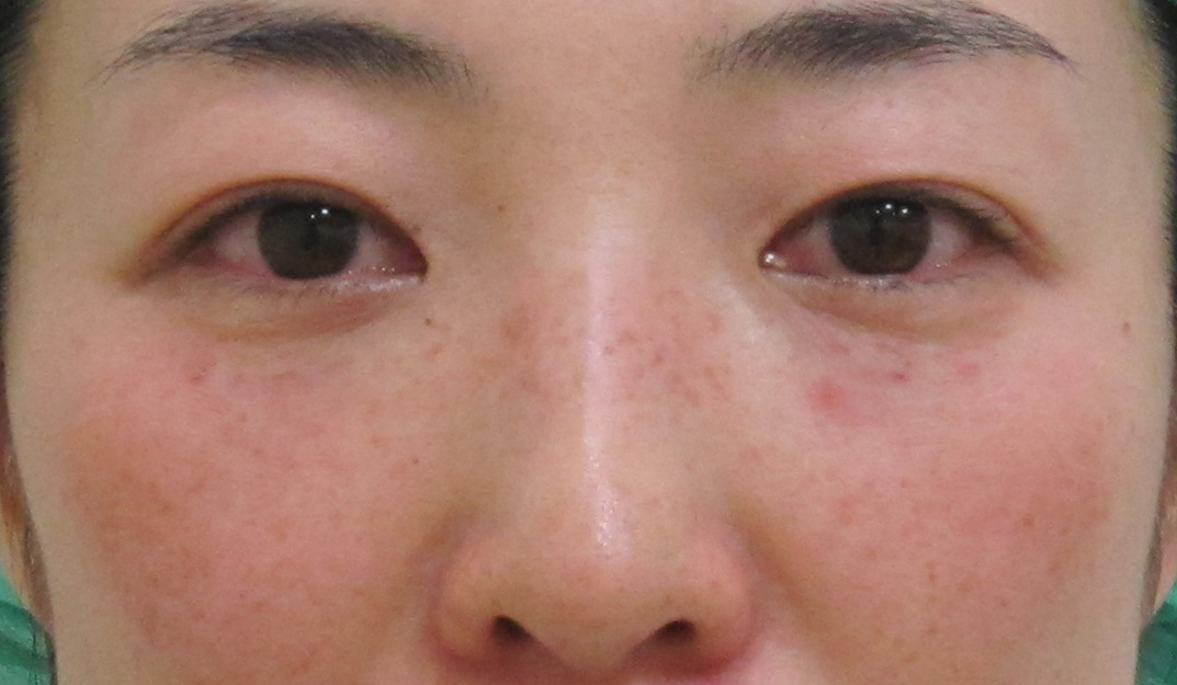 ①他院様にて目の下のたるみ・クマに対して経結膜脱脂+レディエッセ注入を受けられた後に、当院にて目の下のグロースファクターによる修正治療、
