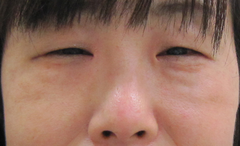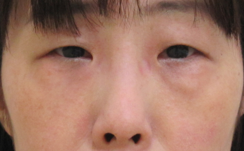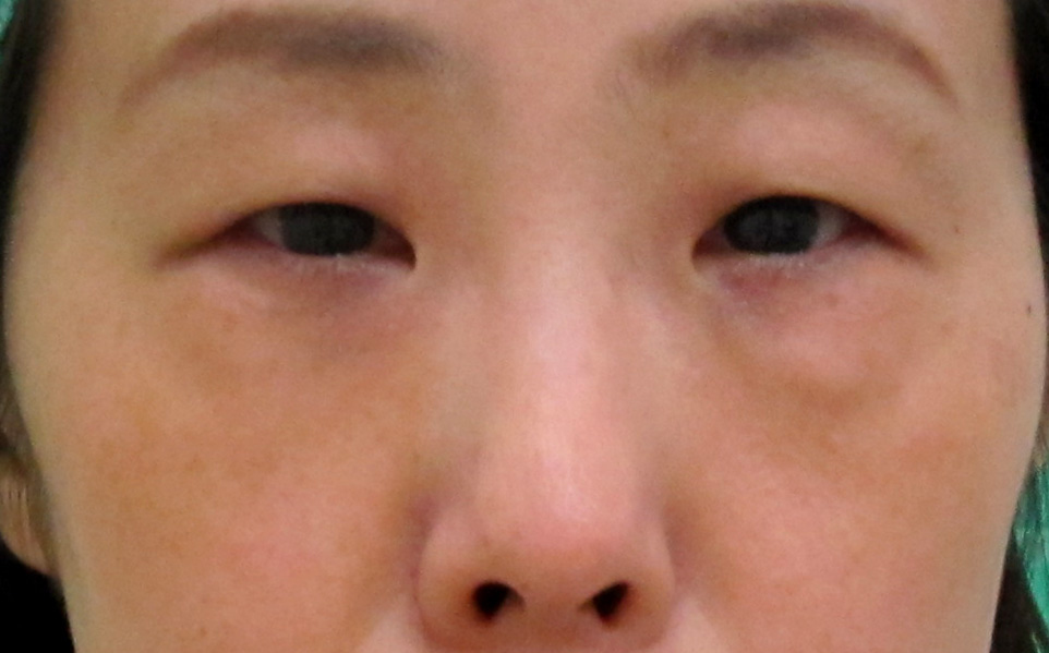①他院様にて経結膜脱脂のみを受けられた後に、当院にて左目の下の経結膜脱脂+両目の下のグロースファクターによる修正治療、