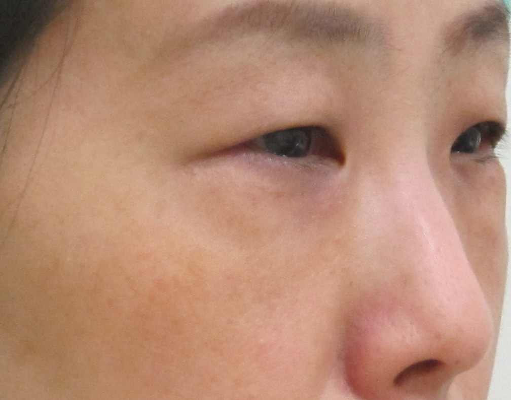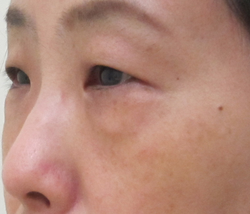 40代女性 脱脂+グロースファクターによるクマ治療(他院治療後の修正)、シミ・くすみ治療