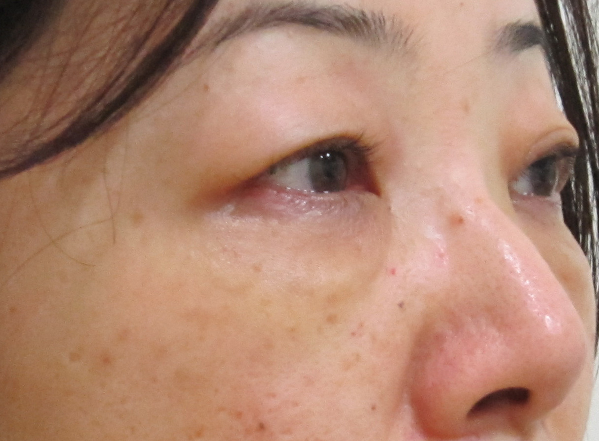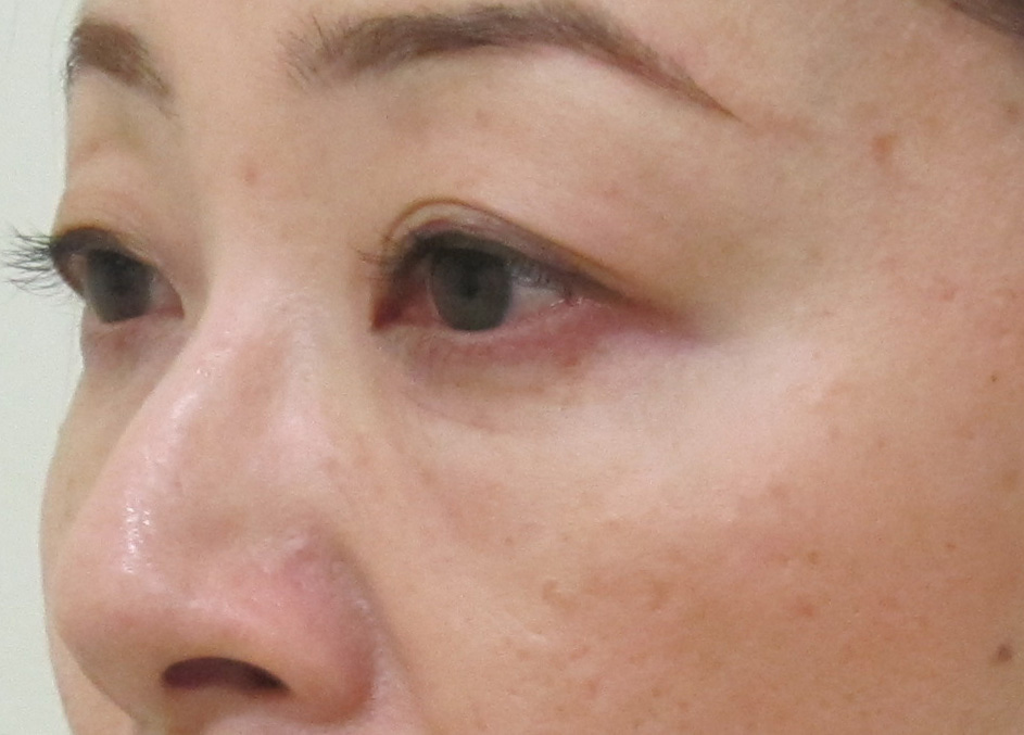 凹凸はほとんど目立たないとのことですが、左目の下のシミや小ジワが気になられているそうです。