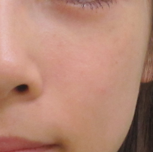 笑った時にできる右目の下のシワと左頬のえくぼを治療する目的で、目の下と頬のグロースファクターを受けられました。