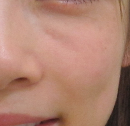 30代女性 グロースファクターによる頬のえくぼ治療 2年8ヵ月後の経過