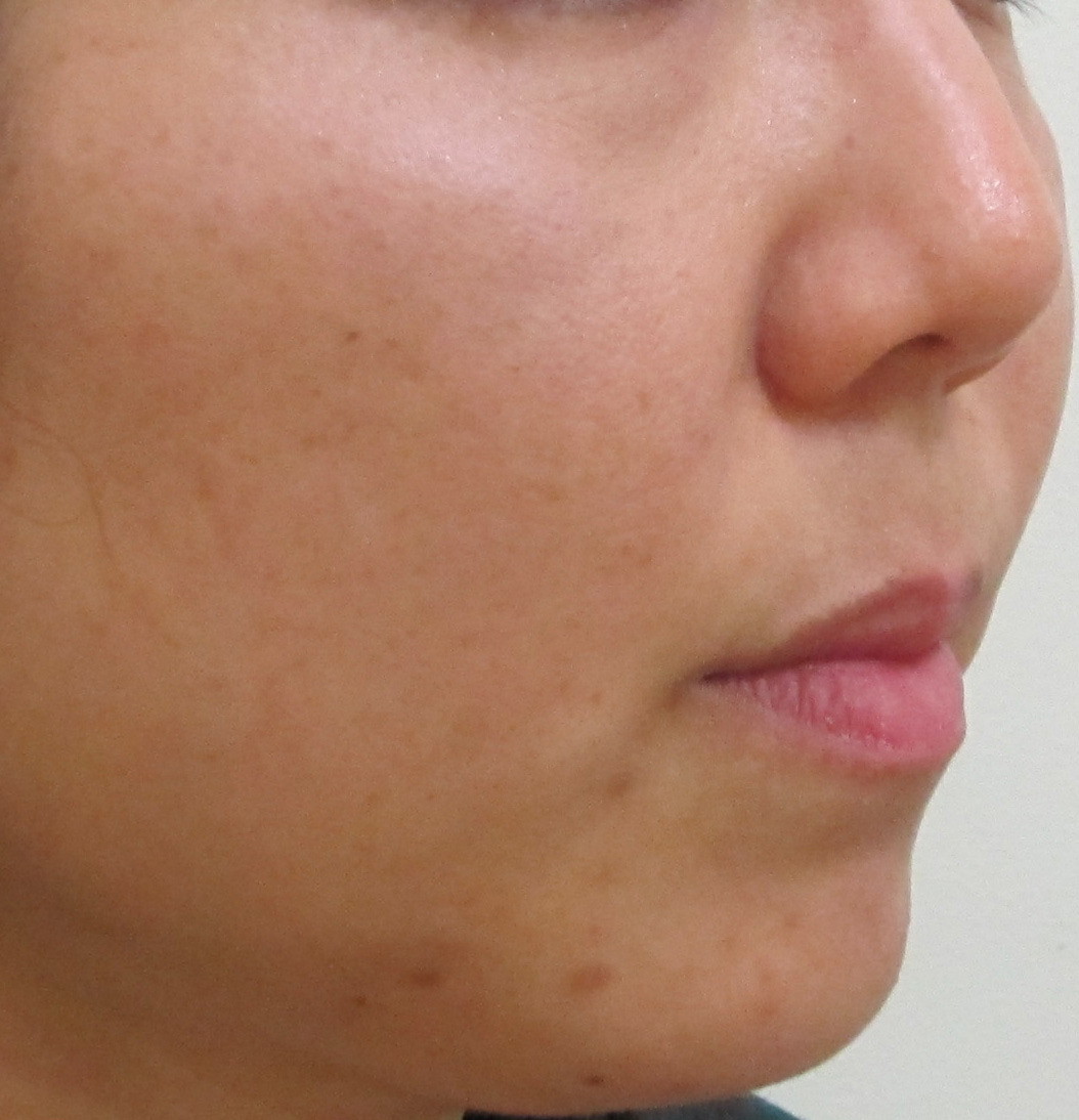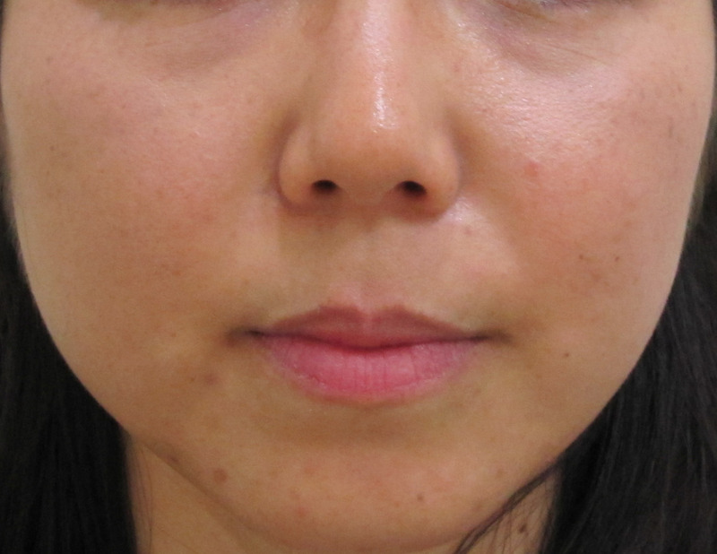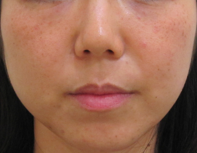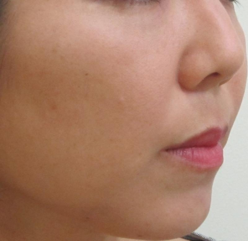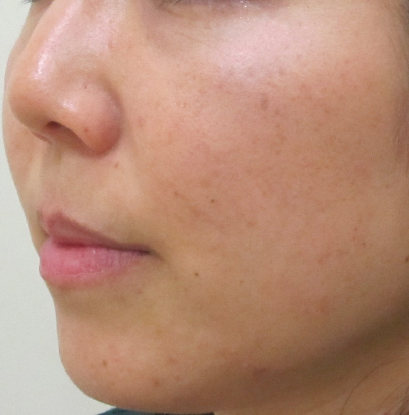 施術直後・・・よく見るとポツポツと注射の跡がありますが、非常に細い針なのでそれほど目立ちません。