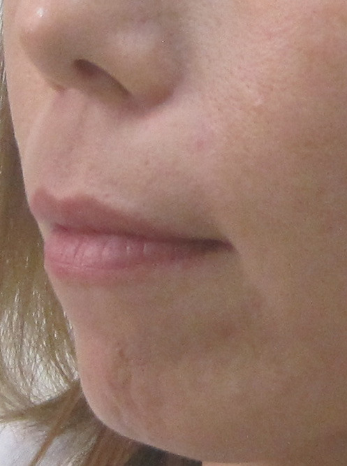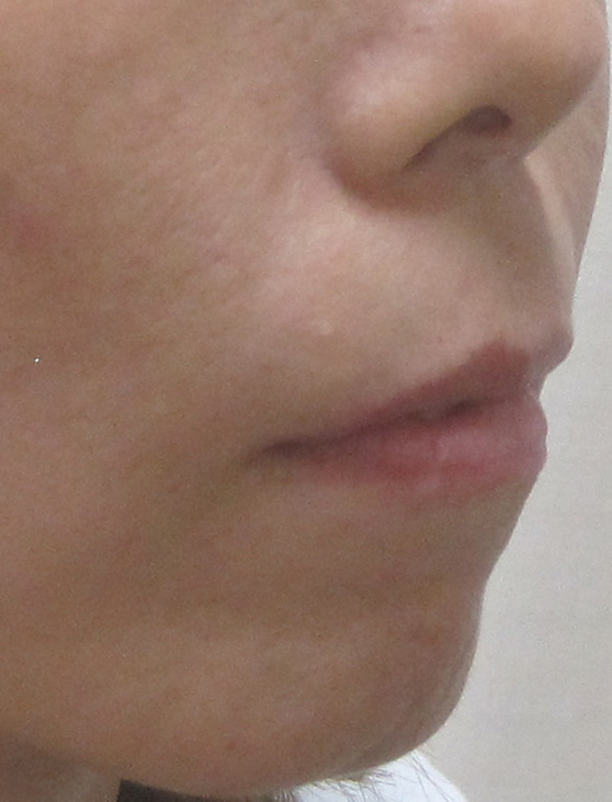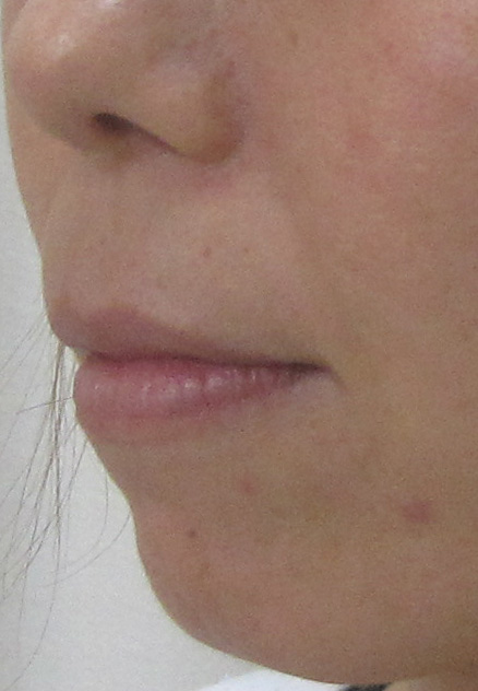 2年後・・・こちら側は、法令線上に小ジワとくすみがあり、少し線のように見えますが、実際はシワと呼べるものはほとんど残っていません。