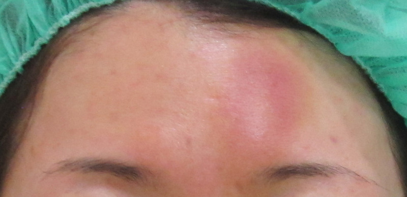 額・コメカミのグロースファクター施術当日に間違ってお酒を飲まれた方です。