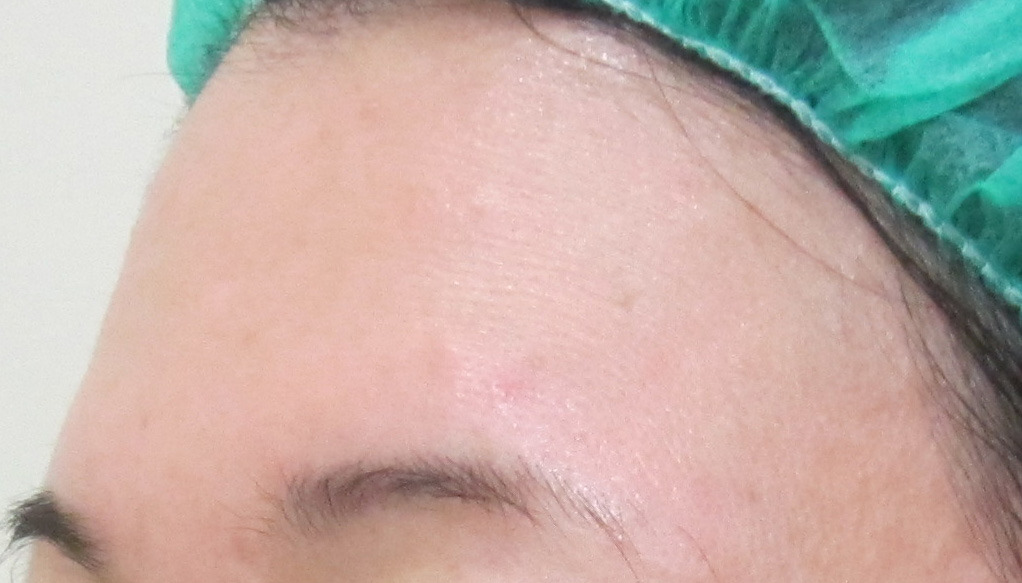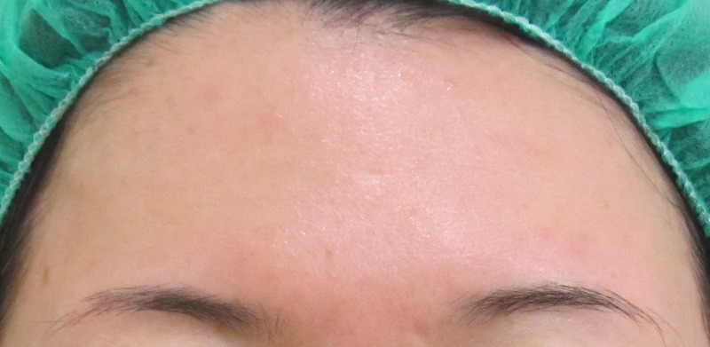 施術前・・・特にシワはありませんが、主に予防的効果を期待して、額・コメカミのグロースファクターを受けられました。