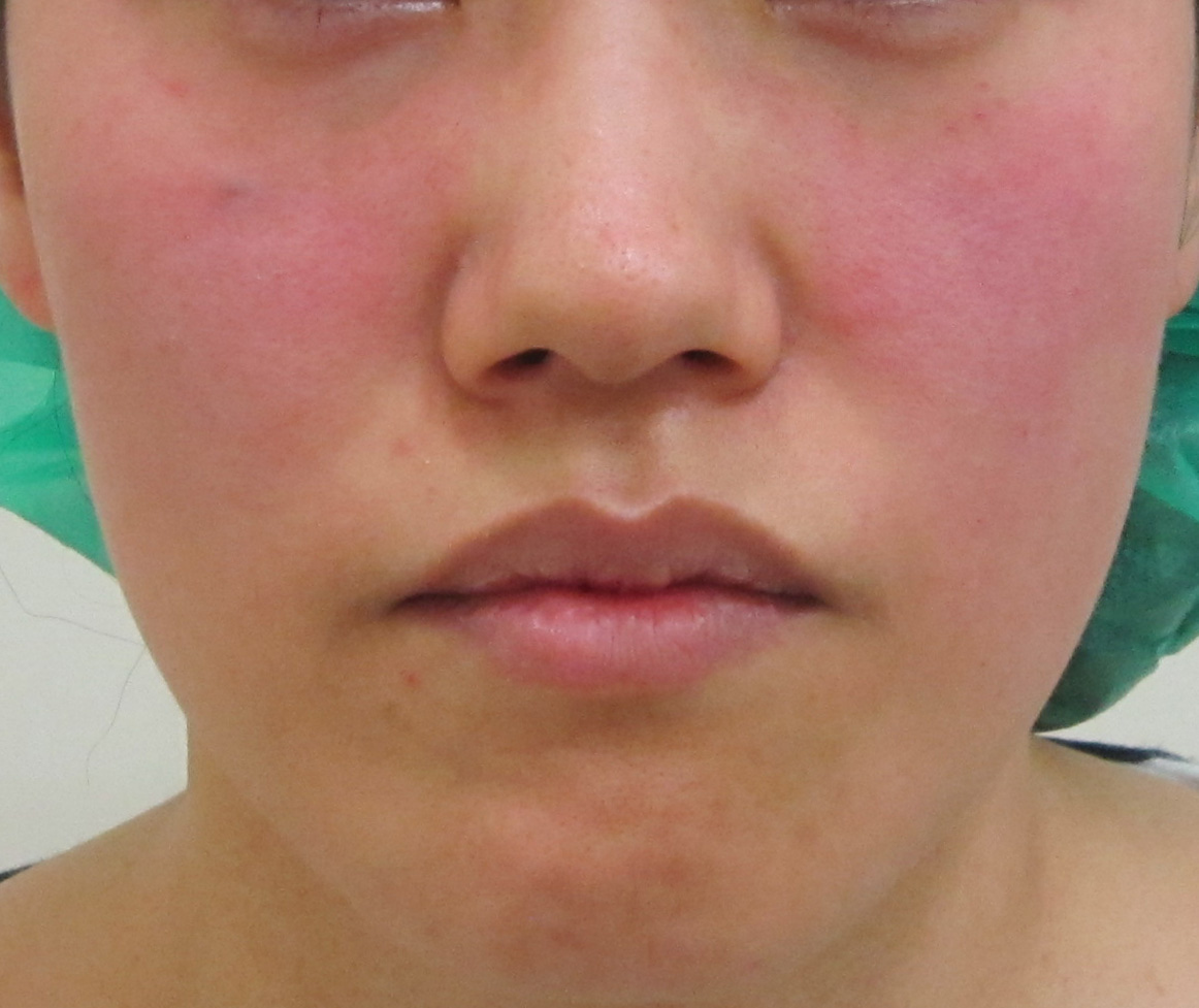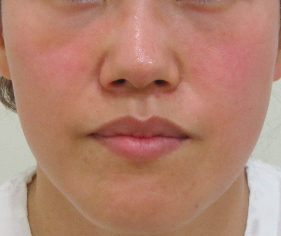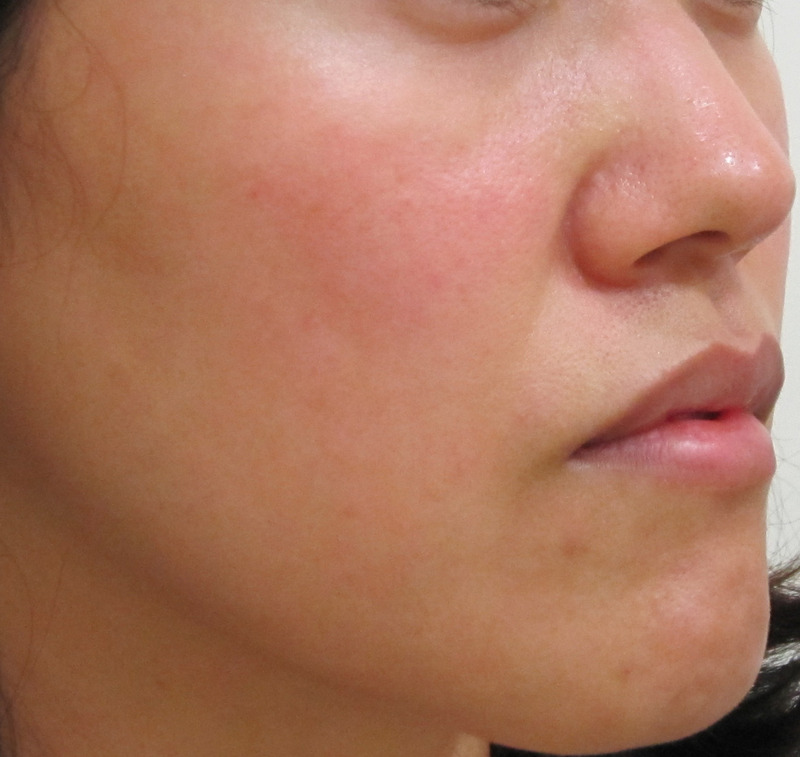 わずかに赤くなっているのは、冷やしたためで、一時的なものです。