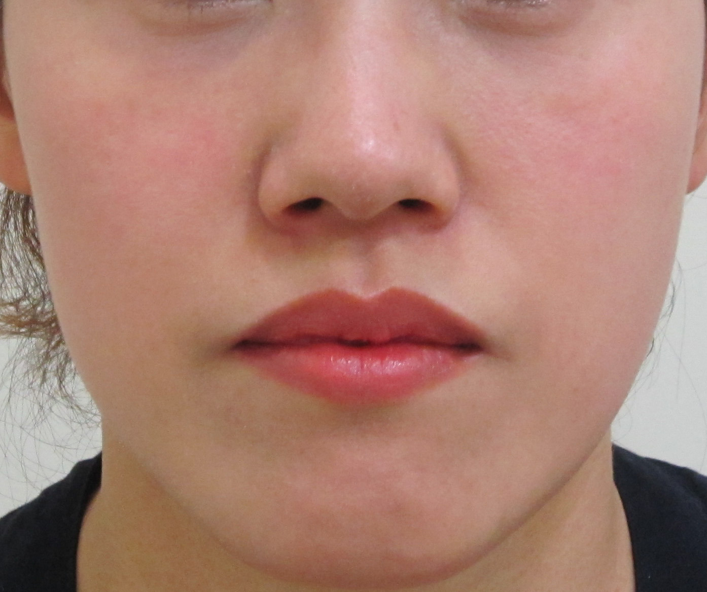 6.頬 はたるみにより上1/2が扁平~ややくぼんだ状態になっています。