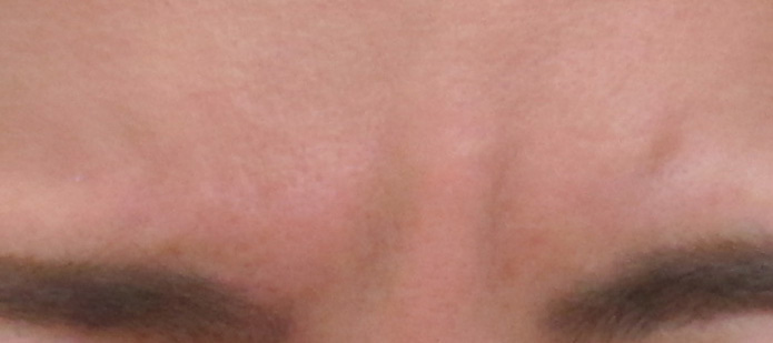 9か月後・・・触ると、眉間のところにハリが出ています。