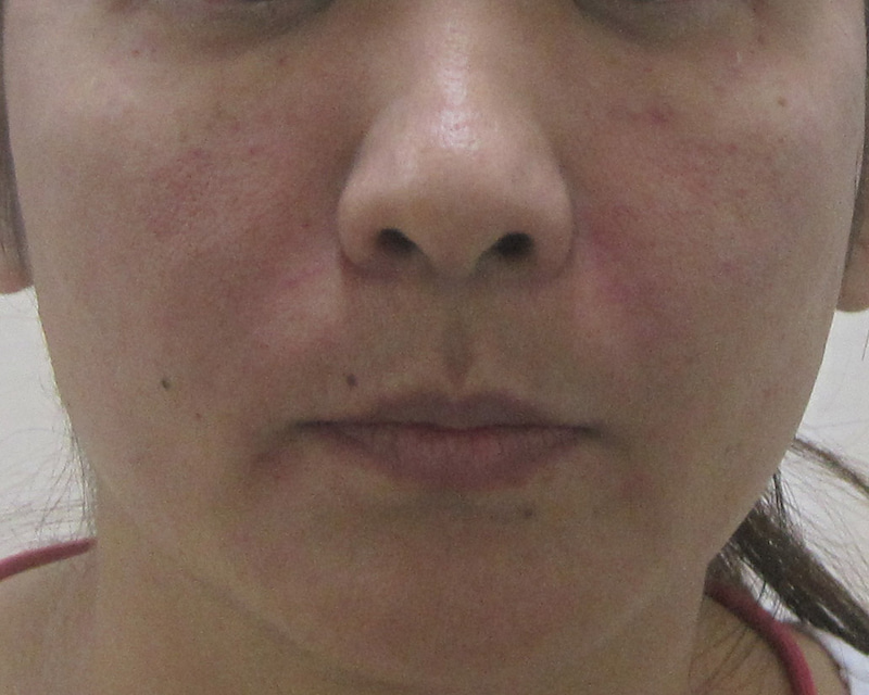 施術直後・・・冷やして赤くなっているのは一時的なものです。