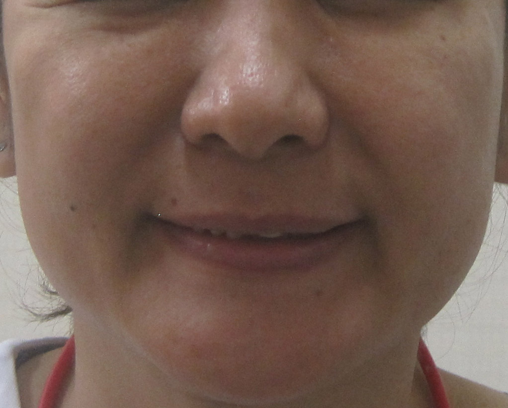 施術前・・・笑った状態の比較です。