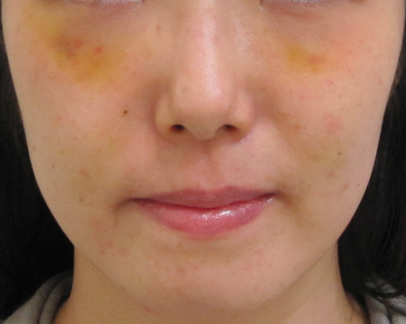 1週間後・・・内出血の跡がまだ残っています。