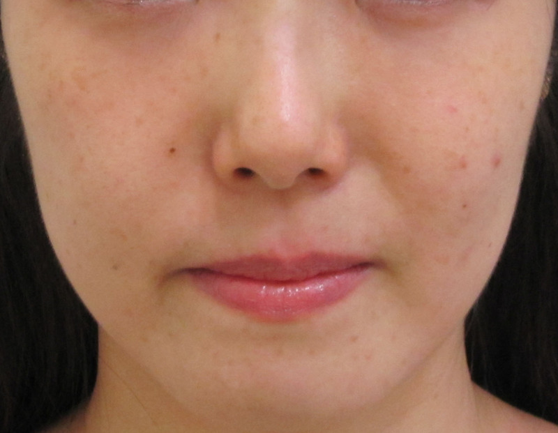 8.ほうれい線は頬の厚みによる左右差が見られます。右側は不明瞭です。