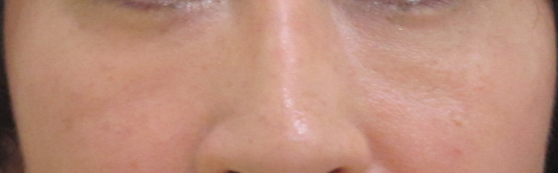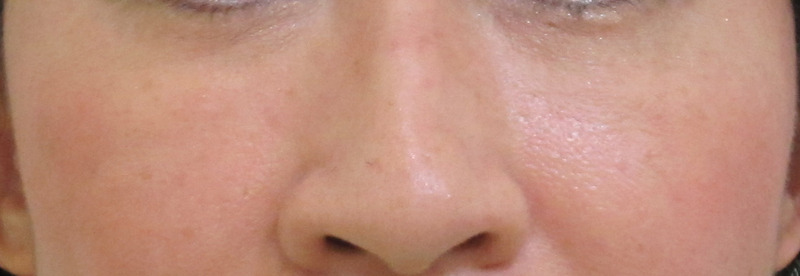 なお、その後、グロースファクターとメラフェードによる治療により、くぼみとくすみはこのように改善しました。