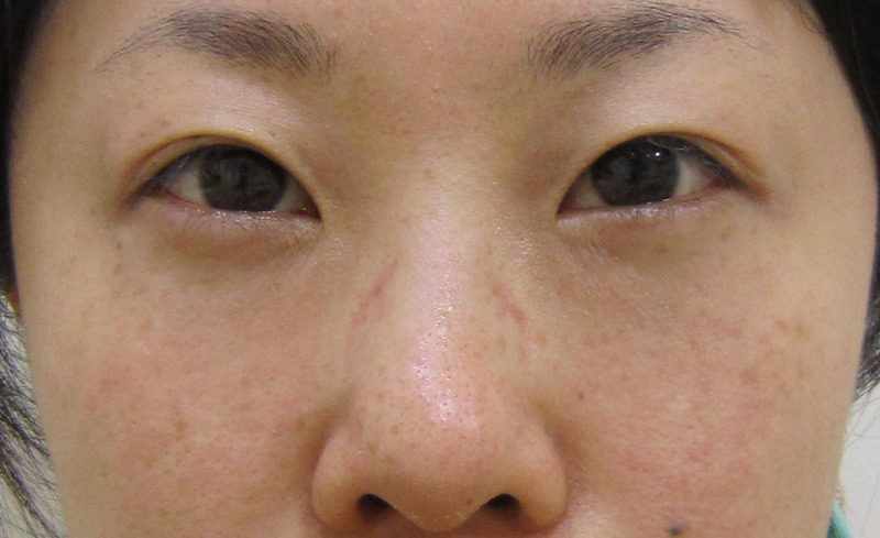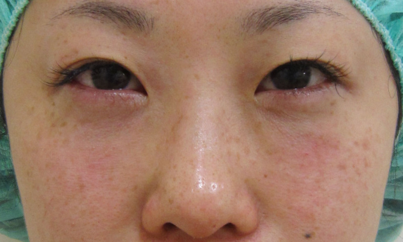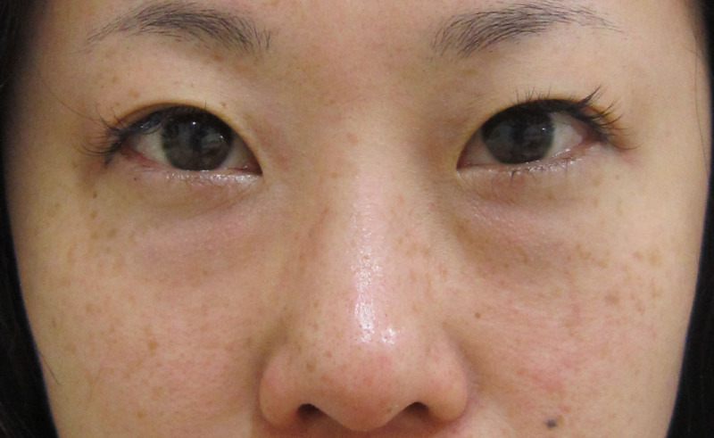 1.涙袋は目の下の脂肪(眼窩脂肪)の突出により不明瞭になっています。