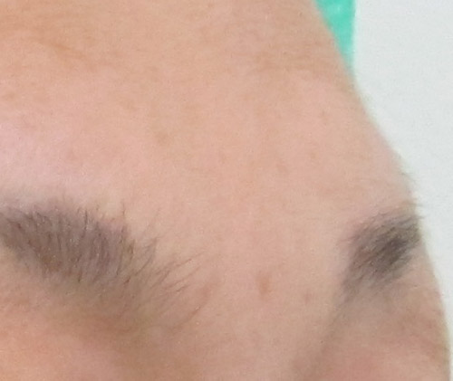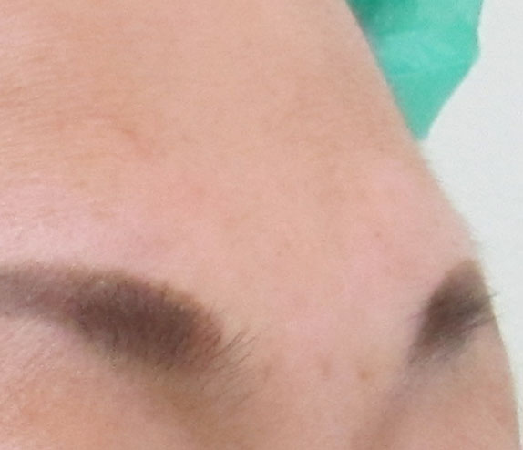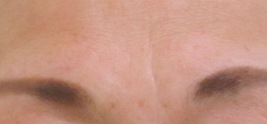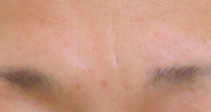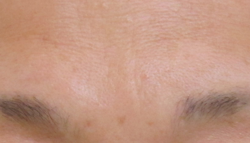 施術前・・・力を入れていない状態ですが、薄くシワが浮き出ています。