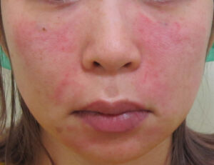 施術直後・・・よく見るとポツポツと注射の跡が見られます。