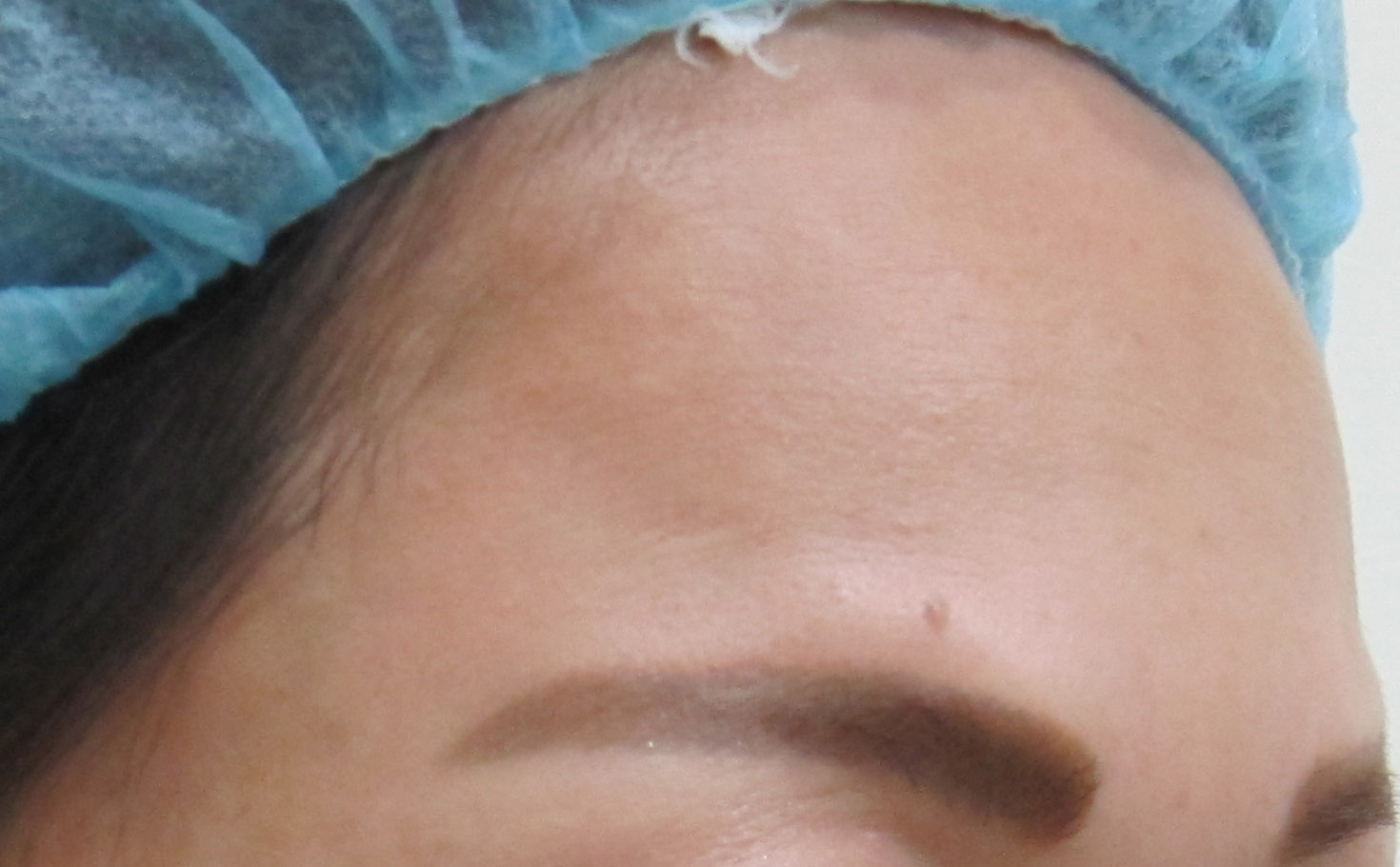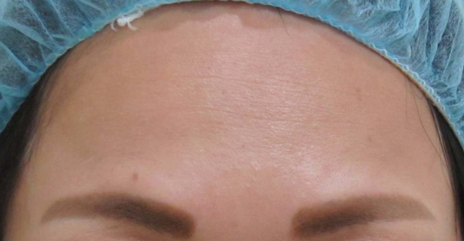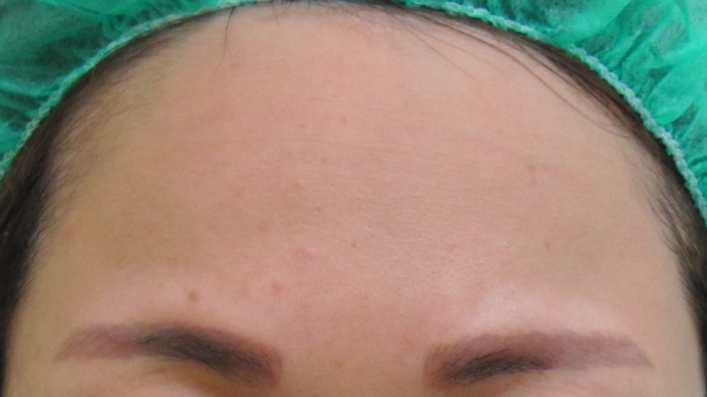 また、眉毛の上げる癖のため、少しシワが残っています。