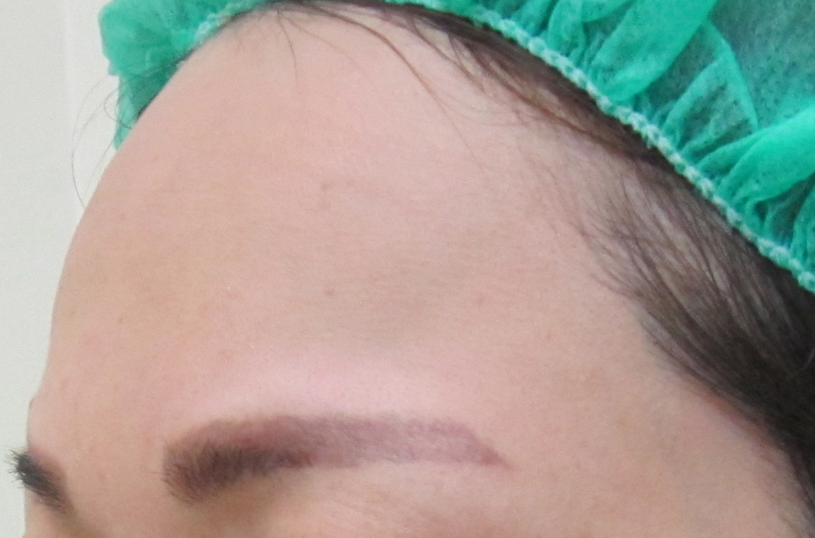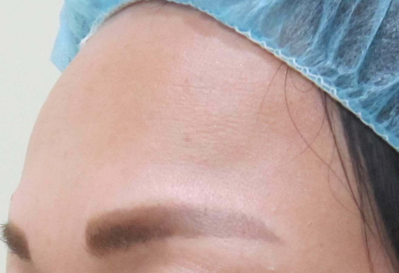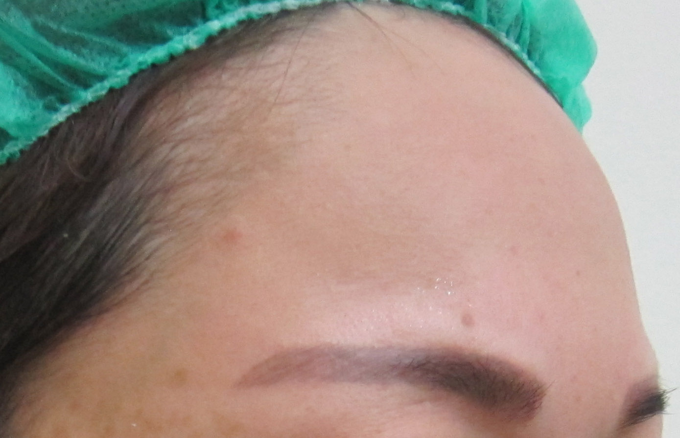 また、眉毛の上げる癖のため、少しシワが残っています。
