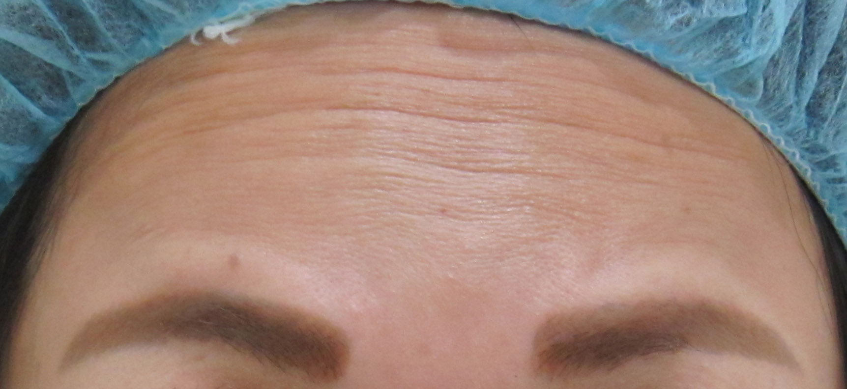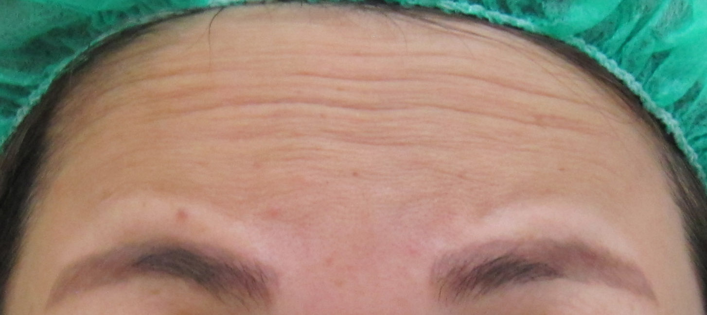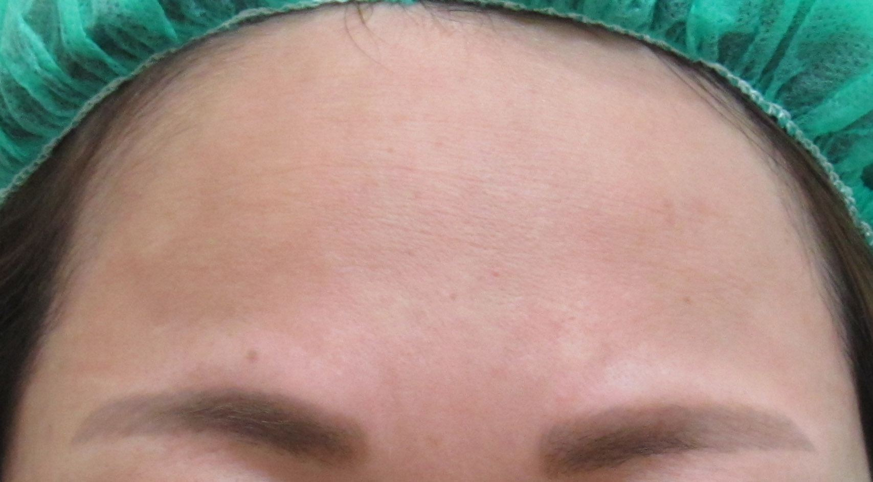 施術前・・・力を入れていない状態では、うっすらとシワがあるようです。