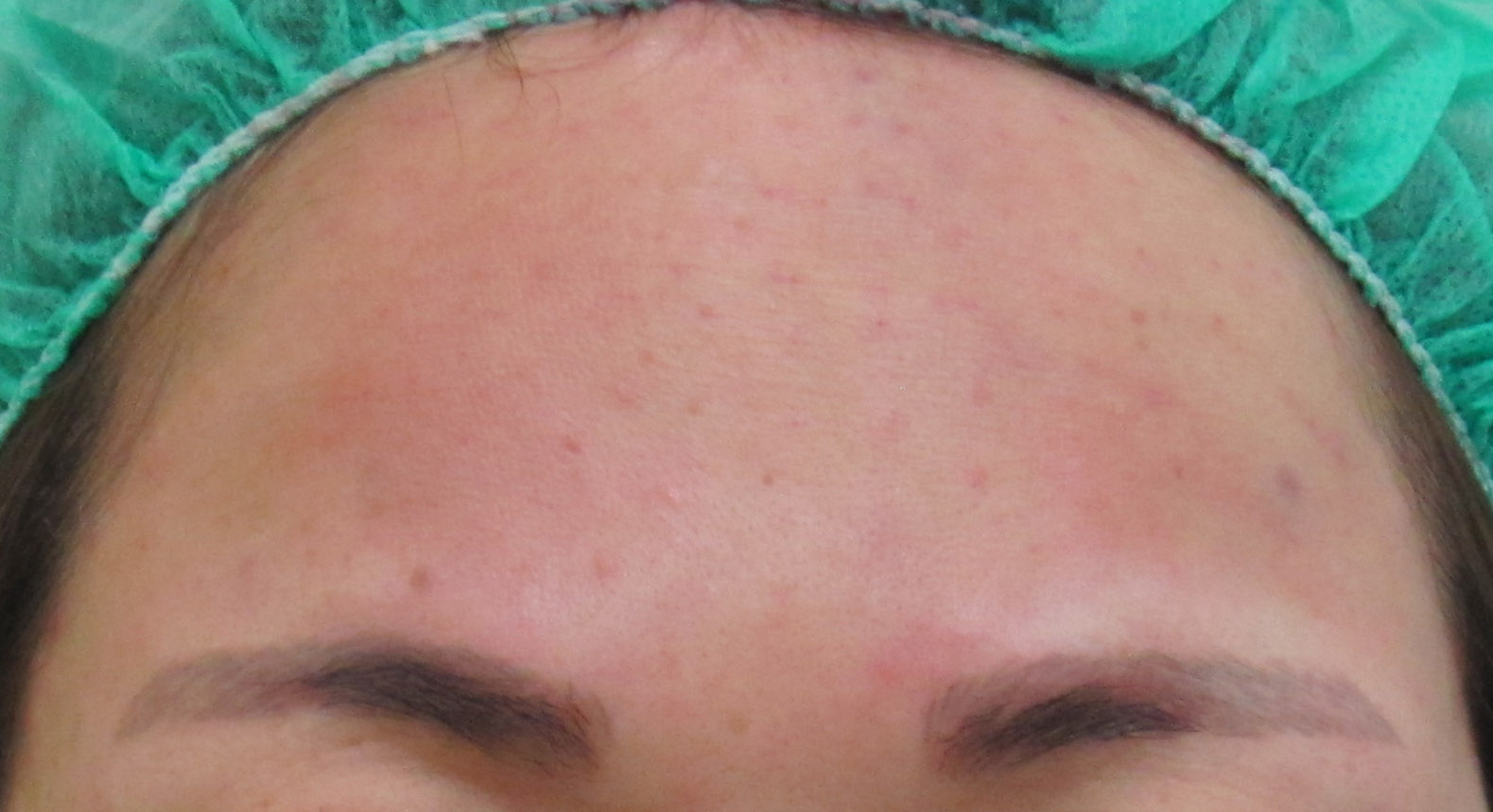 施術直後・・・よく見るとポツポツと注射の跡が見られます。