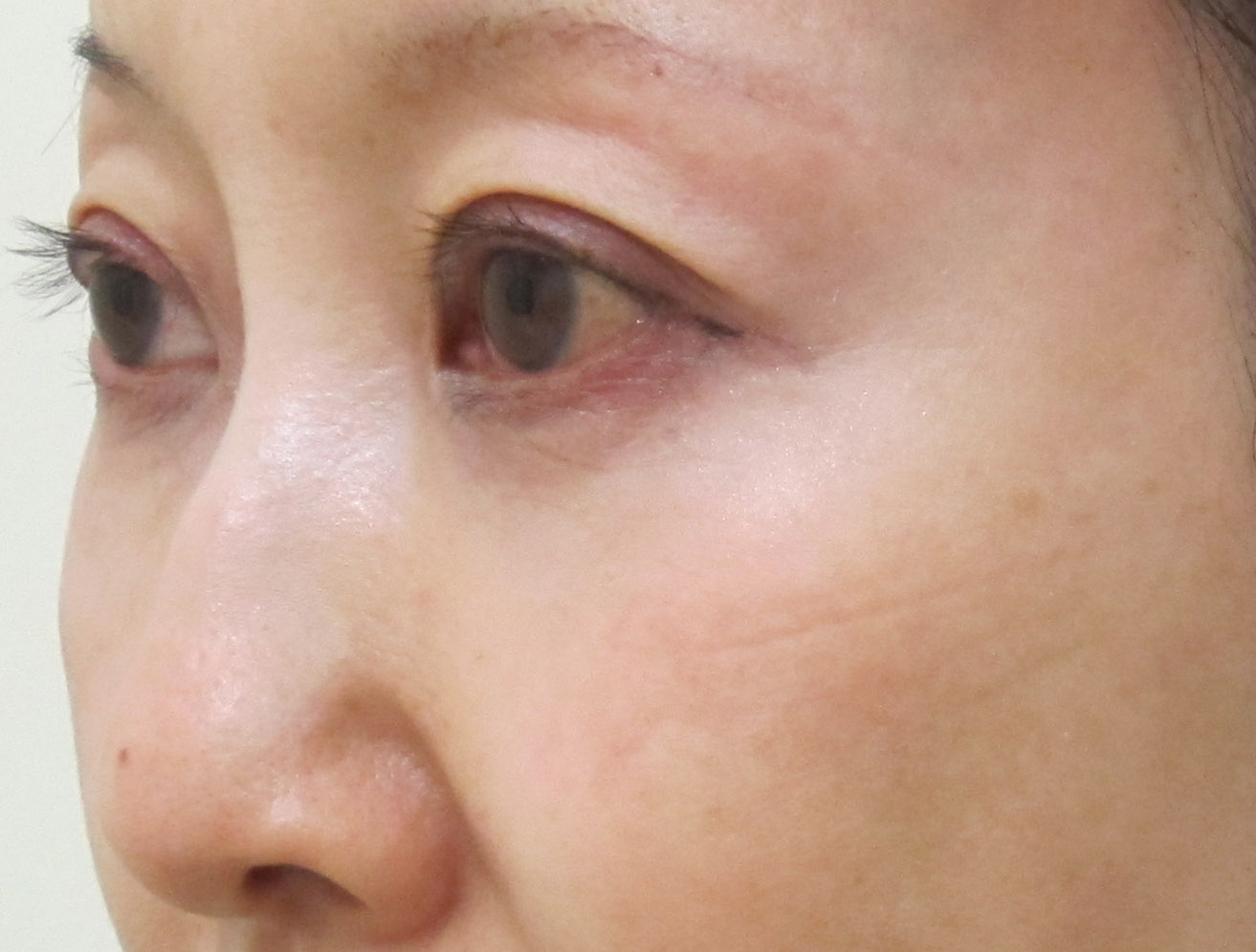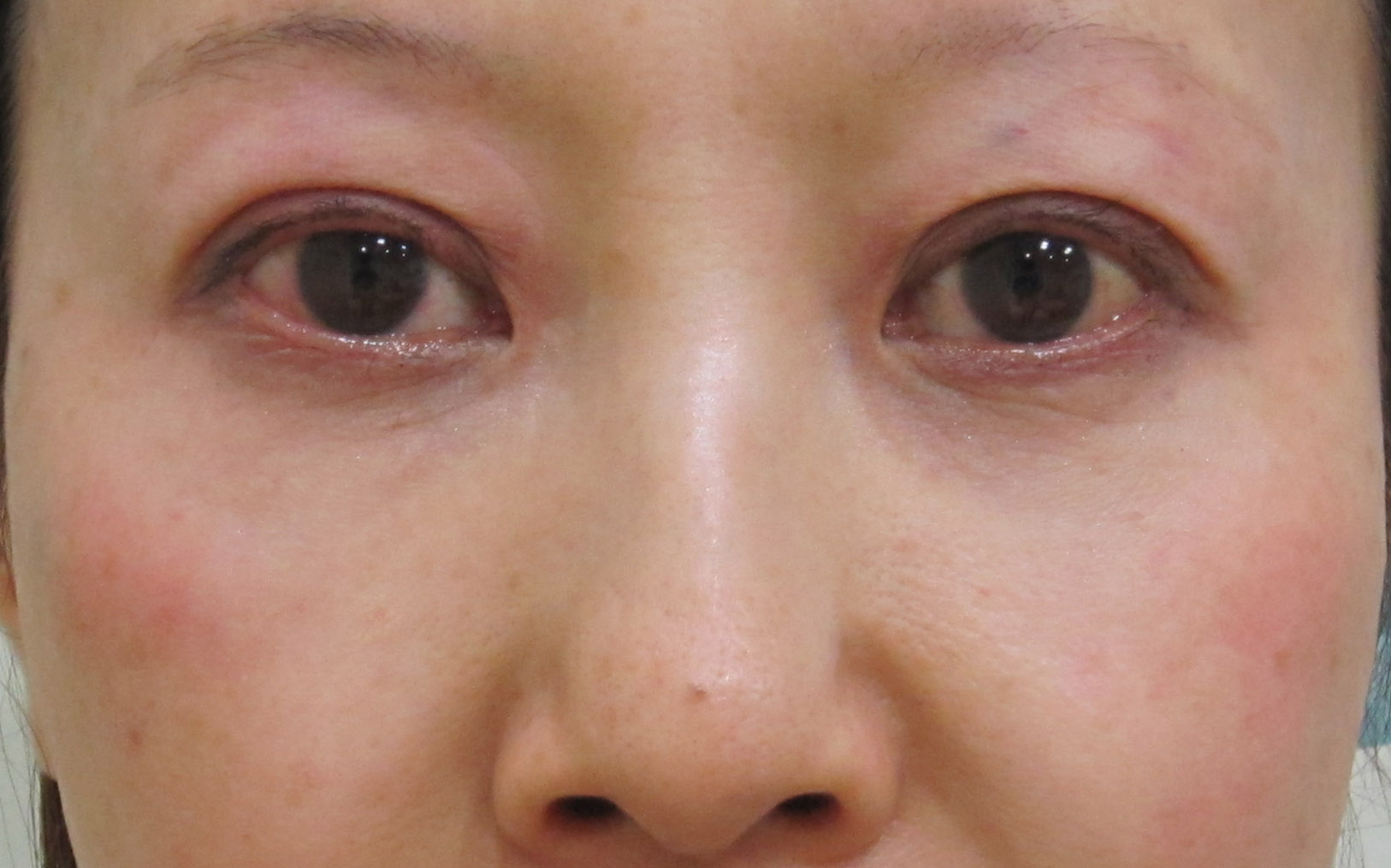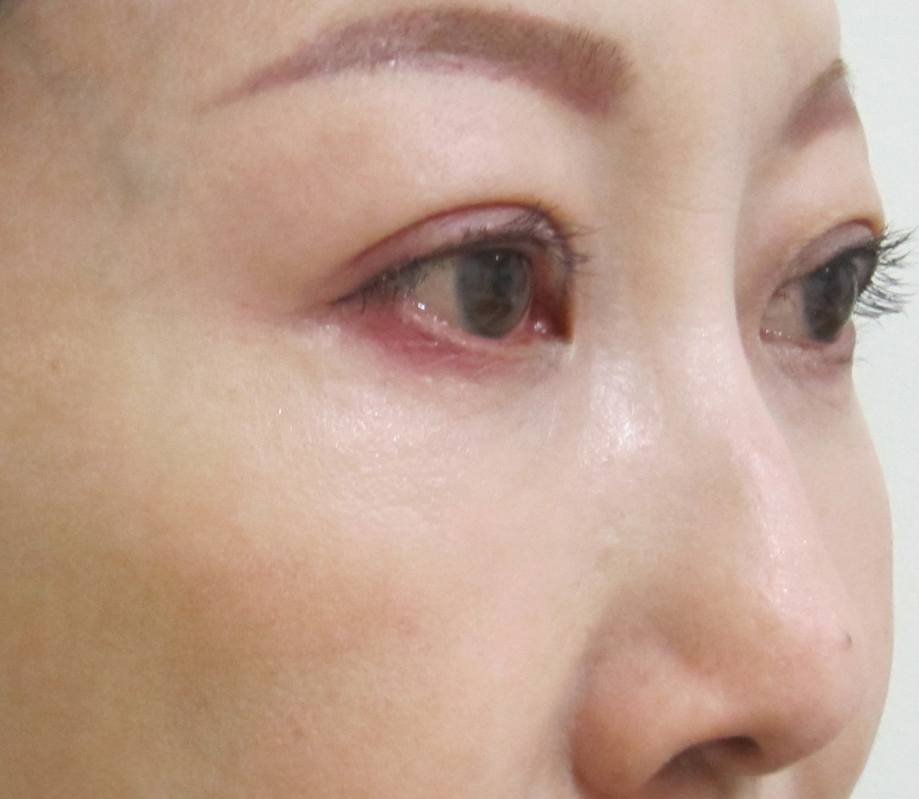 施術直後・・・よく見たら、ポツポツと注射の跡が見られますが、それほど目立ちません。