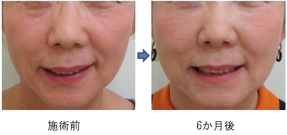 修正治療は、目の下のグロースファクターのみを希望され、頬は受けられていません。