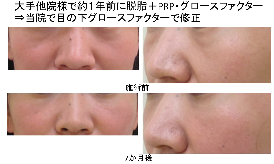 他院様にて脱脂後に、当院にて目の下+頬のグロースファクターで修正治療を受けられた方です。