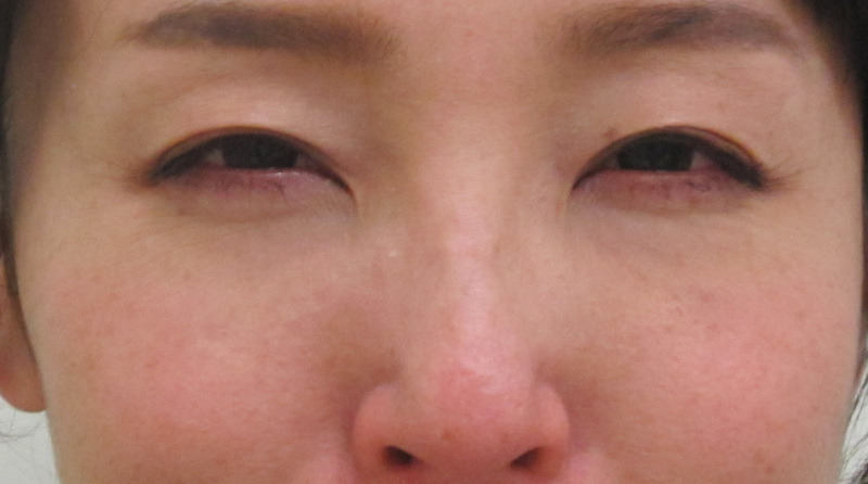 凹凸は改善しているものの、投与範囲が目の下のみであったため、多少ふくらみ感が残っています。