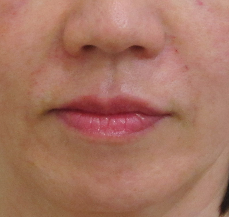 施術前・・・ほうれい線は比較的くっきりとした状態です。