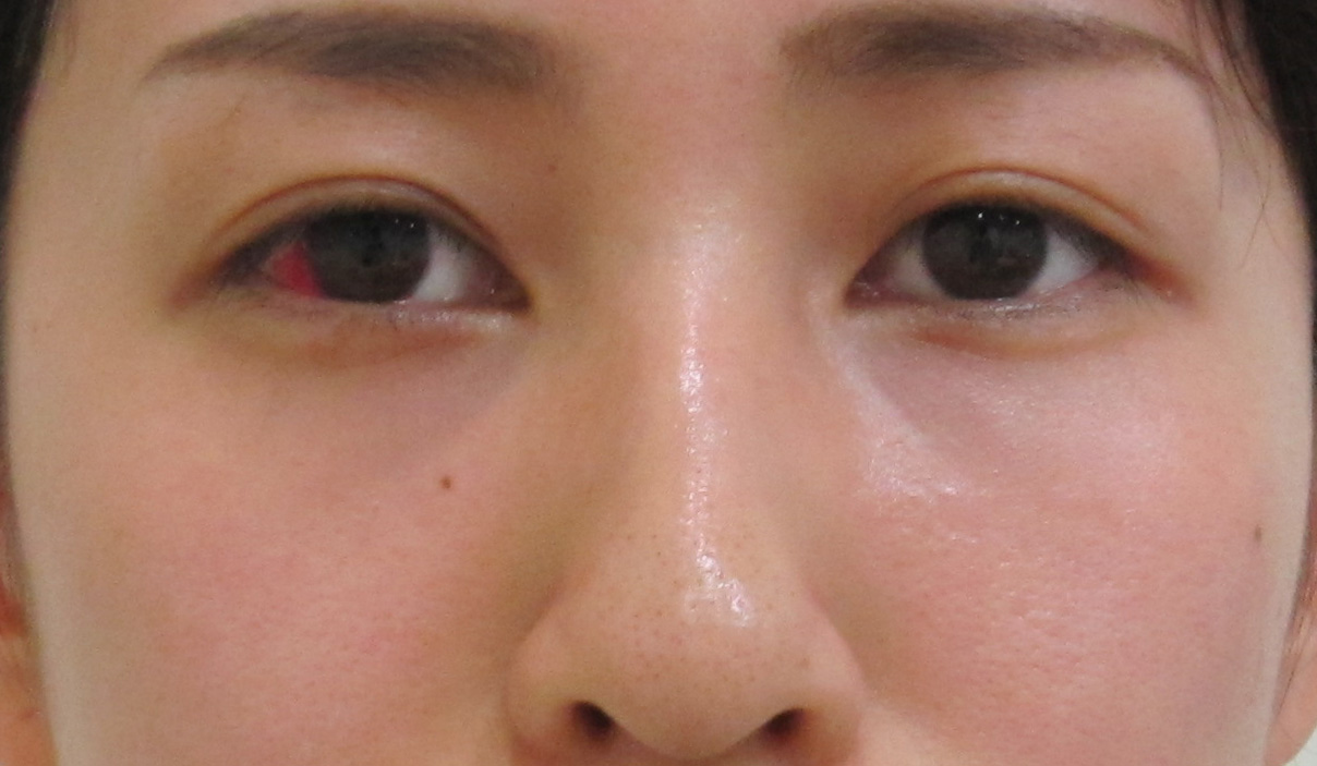 右目の下は、傷口から血がじわっとにじんで、白目のところに透けて見えている状態です。