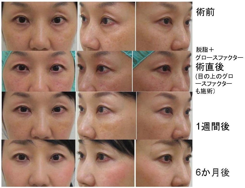 実際は、強い希望により脱脂を受けられる方もいらっしゃいますが、後でシワ修正のためにグロースファクターの追加治療が必要になることがあります。(実際の例>>