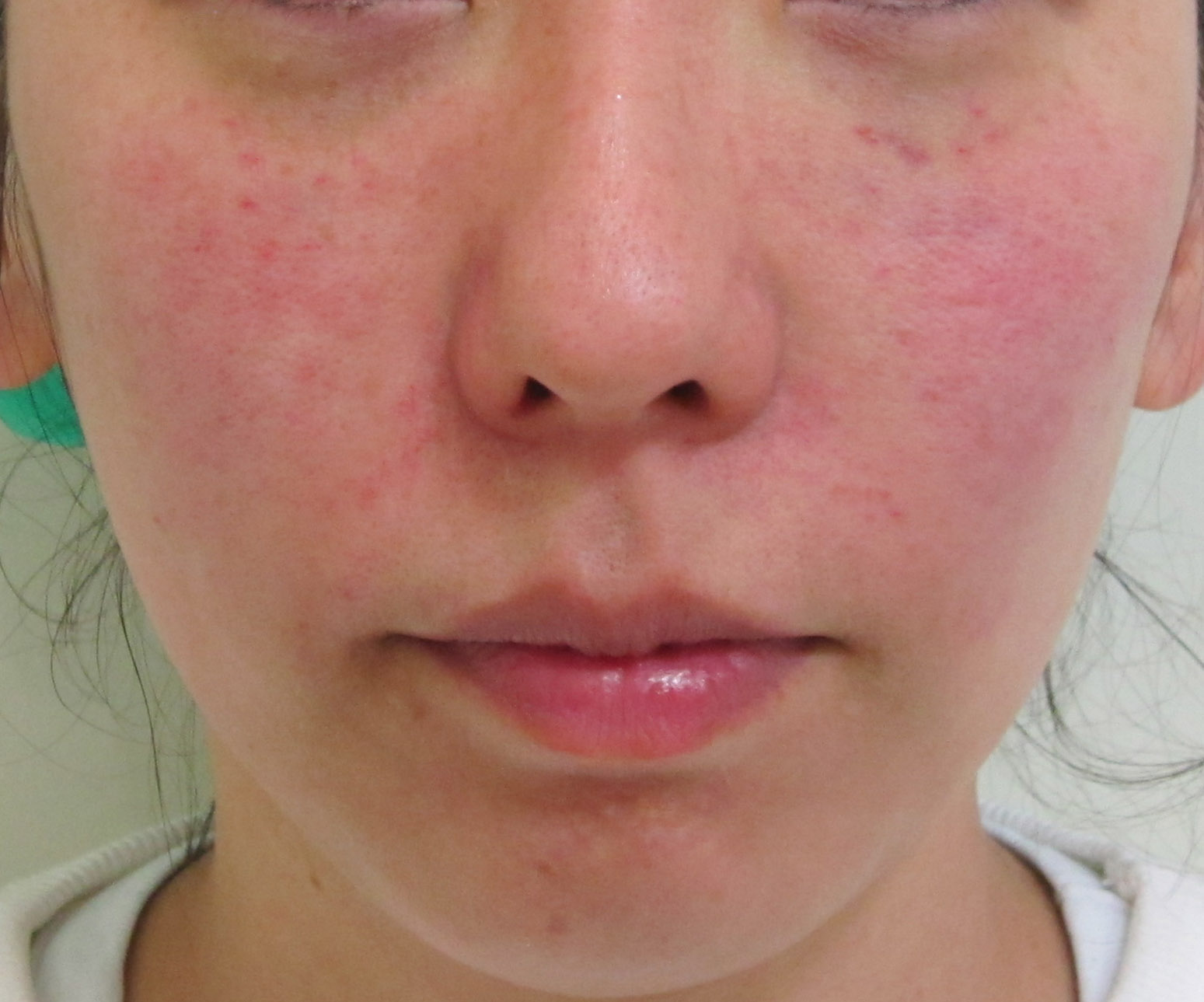 ほんのり赤くなっているのは冷やしたためで、一時的なものです。