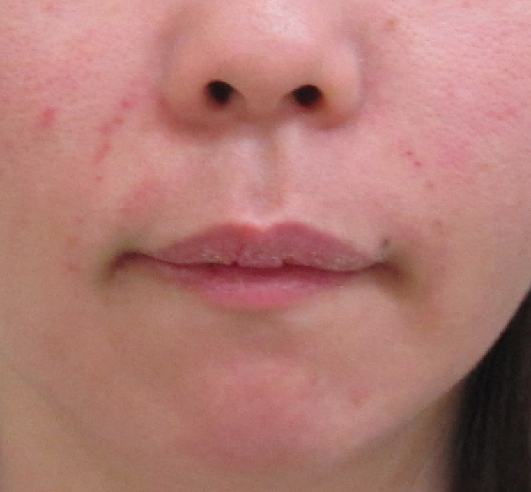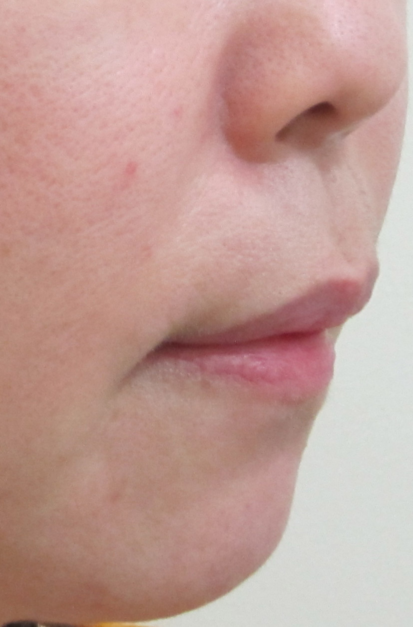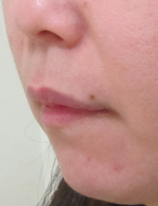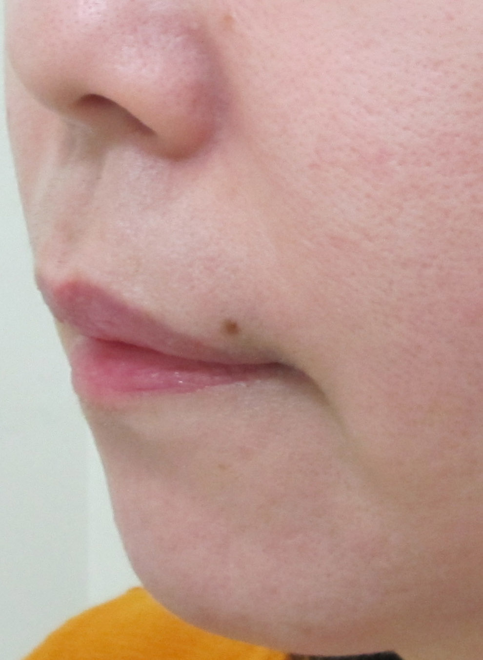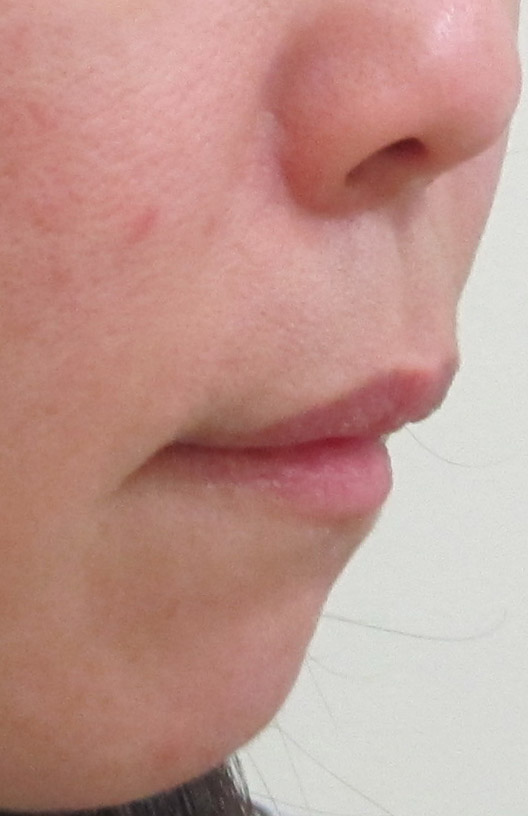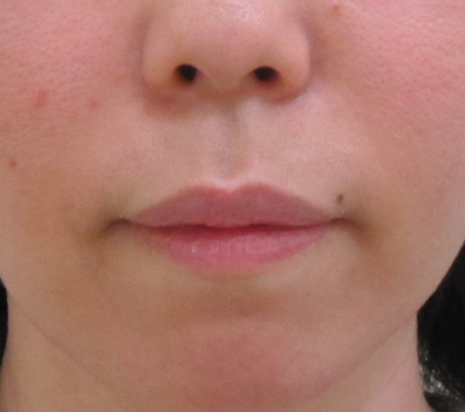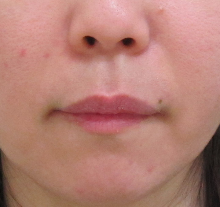 施術前・・・うっすらとした法令線が見られます。